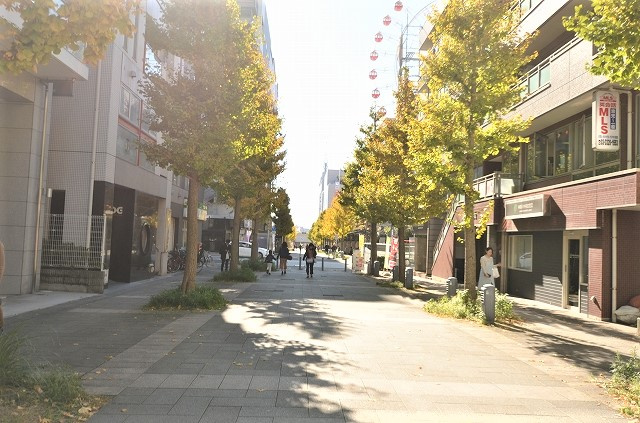 駅から出て阪急とプレミアヨコハマの間の並木道を歩いてくると…